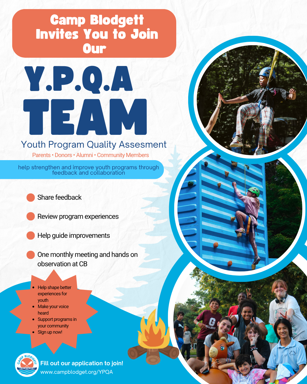 Camp Blodgett invites YOU to join our Youth Program Quality Assessment Team!